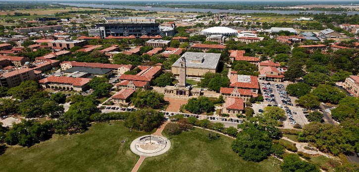 路易斯安那州立大學成立於1853年,校園毗鄰著名的密西西比河,面積超過800萬平方米,被公認為是全美最美的20所大學校園之一,也是全美30所被政府授予土地、海域和太空的大學之一。校園內僅主要建築樓房就超過250座,建築大多在設計建造時採用了文藝復興時期義大利北部地方的灰牆紅頂建築風格為主。